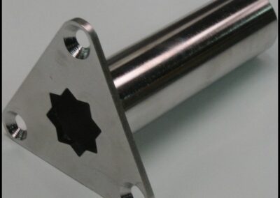 It is made of a fixation plate for the bulkhead with a stainless steel guiding tube (length: 130mm). Its star shape enables to orientate the square tube of our electric haulers and fishing reels. Therefore, our equipments can be self-blocked in one of the 8 positions.